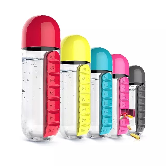 La bottiglia contiene 7 contenitori piccoli per le pastiglie/vitamini che vi aiuteranno a non dimenticare l'ingestione di essi.